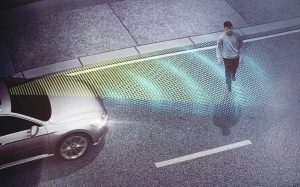 全速度域(時速5km以上)においてレーダーで前方の車両との距離を検知し、衝突の危険を検知するとブレーキシステムをスタンバイし、警告音と警告灯でドライバーに注意を促します。それでもドライバーが回避操作を行わない場合やドライバーによるブレーキングが不十分な場合、自動で車両を減速させて衝突の被害を軽減します。