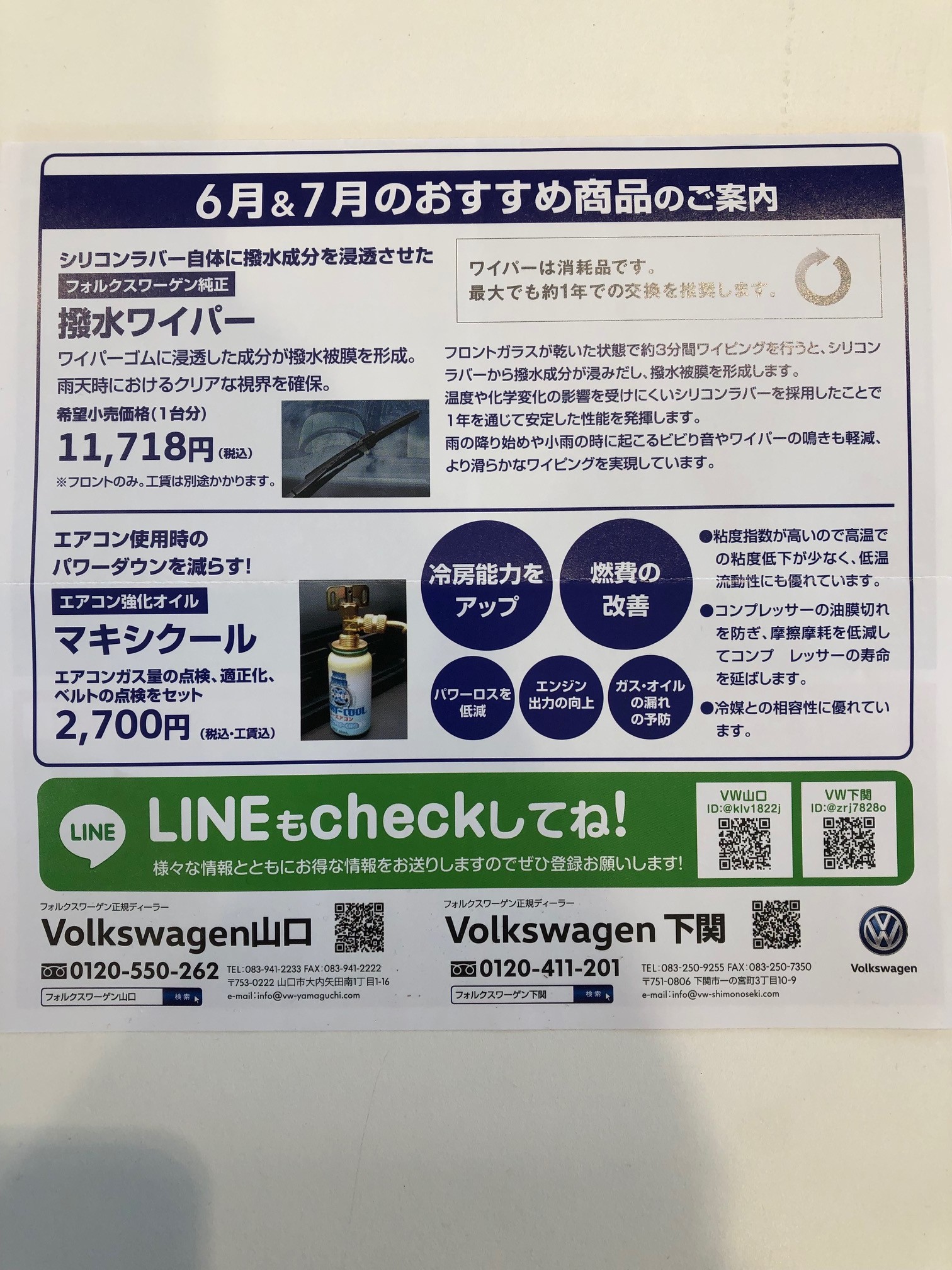 梅雨到来 この時期にオススメの商品 2019/07/07 トピック いつもご覧いただきありがとうございます。 先月から店頭ではご案内しておりました、 梅雨時期ならではのオススメ商品をご紹介します。 雨の日が続くこの時期、クルマの装備で活躍する 装備といえば、やはりワイパーではないでしょうか。 小雨の際、ワイパーの動きはゆっくりです。 この時、ワイパーがビビる、ワイパーが鳴く、 引きずっている感じ、ございませんか? ボディ形状やフロントガラスの形状が凝っている、 輸入車あるあるかと思います。 その悩みを解決方向へ導いてくれる商品が、 多くのお客様にご好評の「撥水ワイパー」です。 安心の純正クオリティで、¥11,178~ ご準備しております。 一部車種では取扱いがまだございませんが、 是非、車検証をお手元にお問い合わせください! 次の記事 前の記事