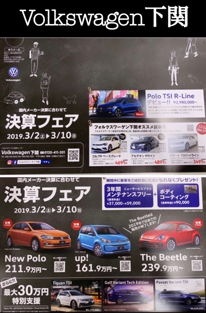只今、Volkswagen下関では決算フェアを開催中です♥