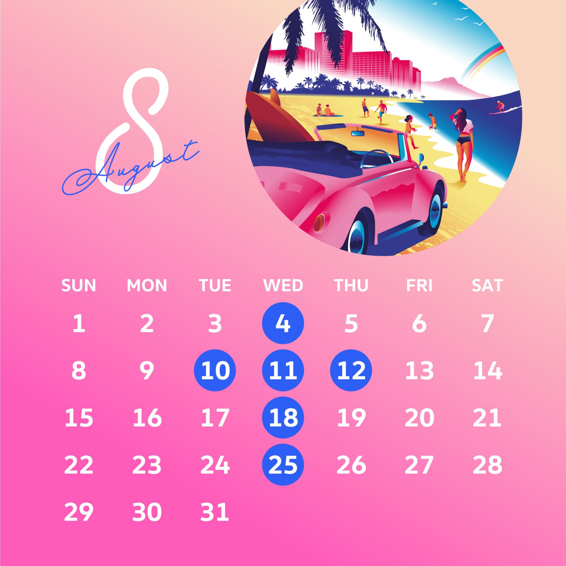 4. 8月の店休日のご案内です。