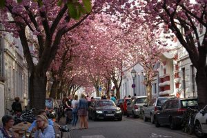 ドイツでは基本的には路上駐車で、片輪を歩道に乗り上げて駐車するところも多いです。