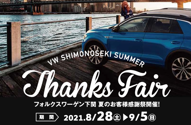 夏のお客様感謝祭を開催いたします! 2021/08/24 トピック こんにちは フォルクスワーゲン下関です。 今年も皆様への日頃の感謝を込めまして 『 Summer Thanks Fair 』お客様感謝祭を開催します! 8月28日(土曜日)から9月5日(日曜日)までの9日間盛沢山のイベント内容でご準備しております。 9月までの特別低金利中のPolo、T-Cross、T-Rocも展示車、試乗車ご準備しております。期間中はT-RocにVW純正オプション10万円分プレゼント! イベント期間中は通常(11回分)7,000円の洗車チケットがなんと5,900円で販売しております! お待ちの間はゆっくりくつろげるお得なチケットはいかがでしょうか? また、8月28日・29日(土・日)のイベントは、2日間限定VWグッズ詰め合わせハッピーサマーバッグを販売します! 9月4日(土)~5日(日)の2日間は大人気の「ジュラテリア クラキチ」さんのジェラートをお一人様一個プレゼント! 同日自動車保険相談会も開催しますので、保険証券ご持参よろしくお願いいたします。緊急通報機能付きの保険会社のドラレコもご案内いたします。 さらに、新発売のVW純正ドライブレコーダーが3機種登場!!安心安全の為にも何かしらのドライブレコーダーを付けて楽しいドライブを! 皆様のご来店楽しみにお待ちしております。 いつもフォルクスワーゲン下関のホームページをご覧いただき誠にありがとうございます。 Facebook、Twitter、Instagram 随時更新しています。フォロー・いいね お待ちしております☆ Facebook / Twitter / Instagram 次の記事 前の記事