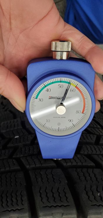 フォルクスワーゲン下関ではスタッドレスタイヤは溝の深さをチェックするだけではなく硬度計を使ってゴムの硬さも診断しております?