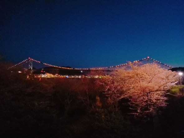 関門橋の夜景と桜がとても綺麗でしたよ?