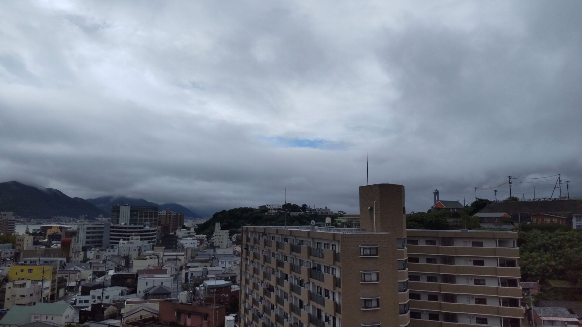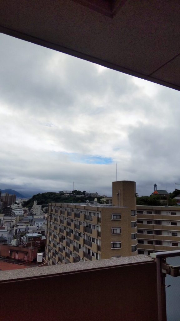 19日09:15頃に一瞬晴れ間がありました。台風の目? まさか~!と思いつつ撮りました。
